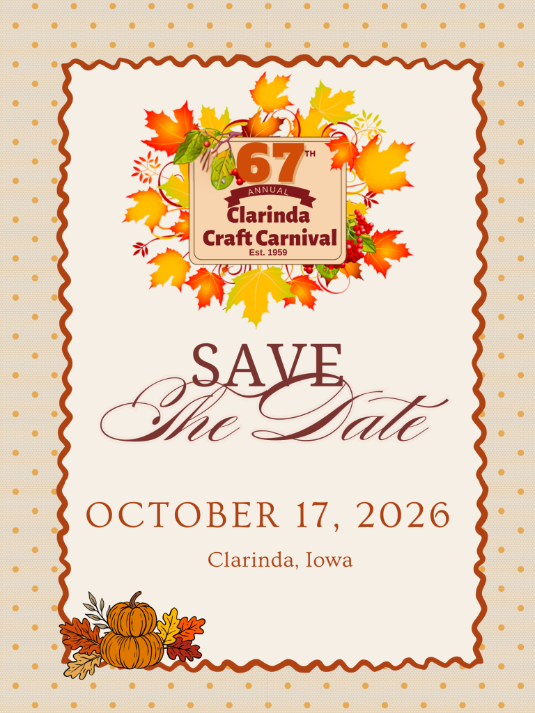 Vendor registration for the 67th Clarinda Craft Carnival will begin in March 2026.